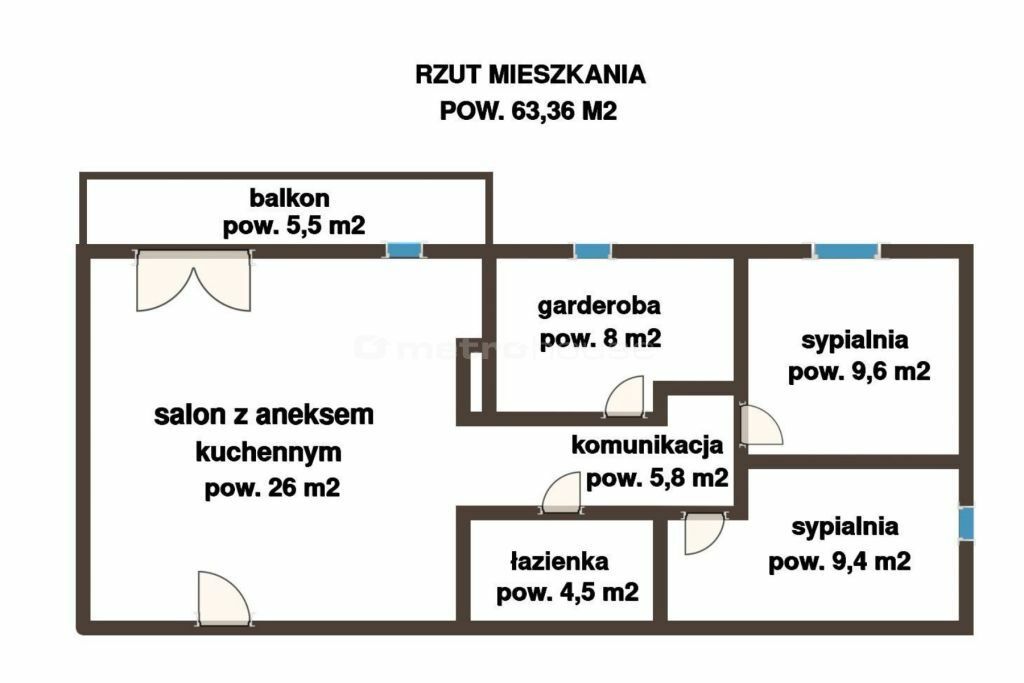 komunikacja (5,8 m²).
