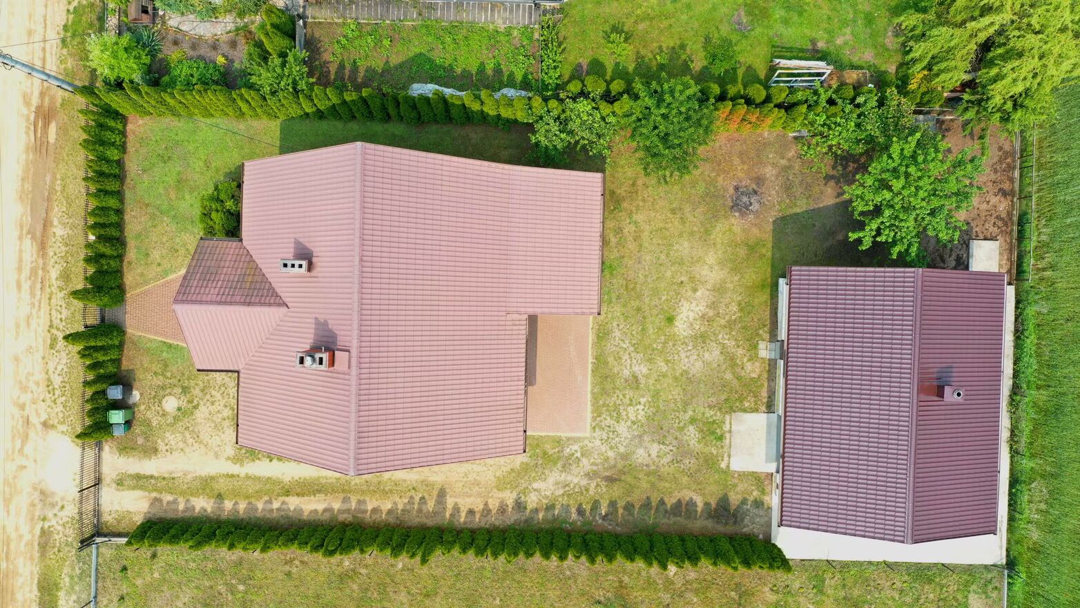 Dodatkowo na działce posadowiony duży garaż z pomieszczeniem gospodarczym o powierzchni zabudowy 71,25 m2 - duża, przemysłowa brama na otwierana automatycznie, a do tego pomieszczenie na biuro.