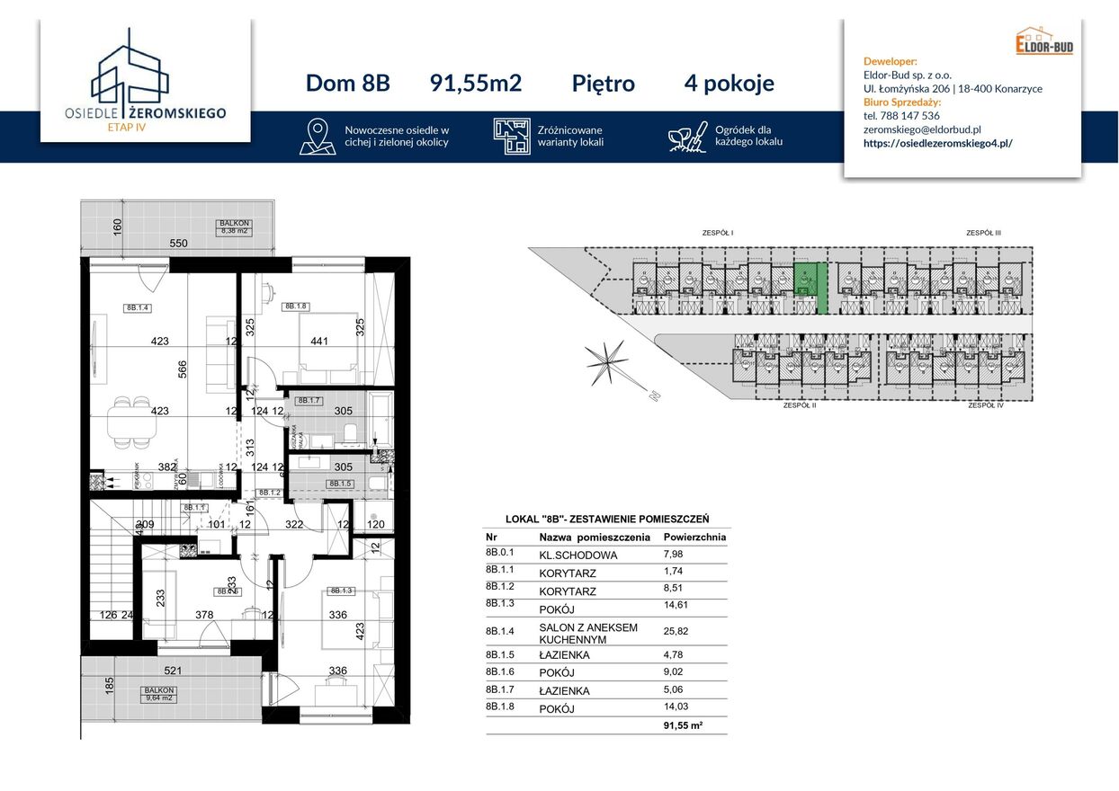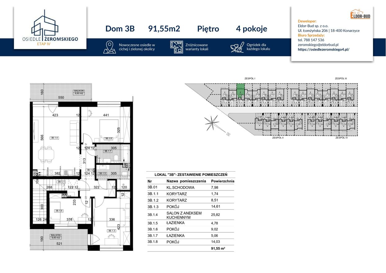 - mieszkanie nr 1B: 91,55 m2 - 522.000 zł