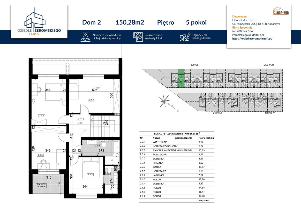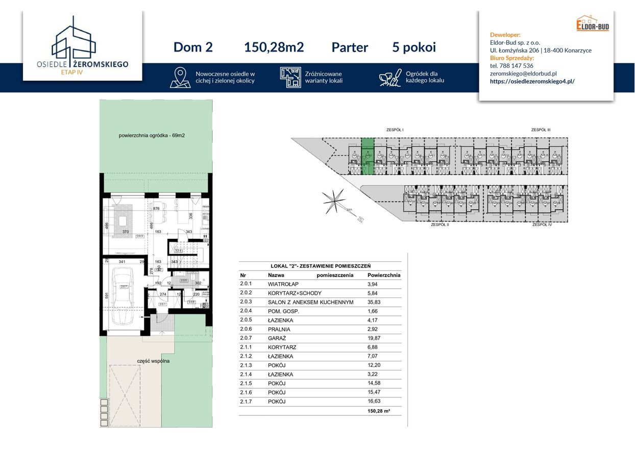 Prezentowana oferta dotyczy domów oznaczonych jako 2 oraz 7 o powierzchni 150,28 m2, w skład którego wchodzą: