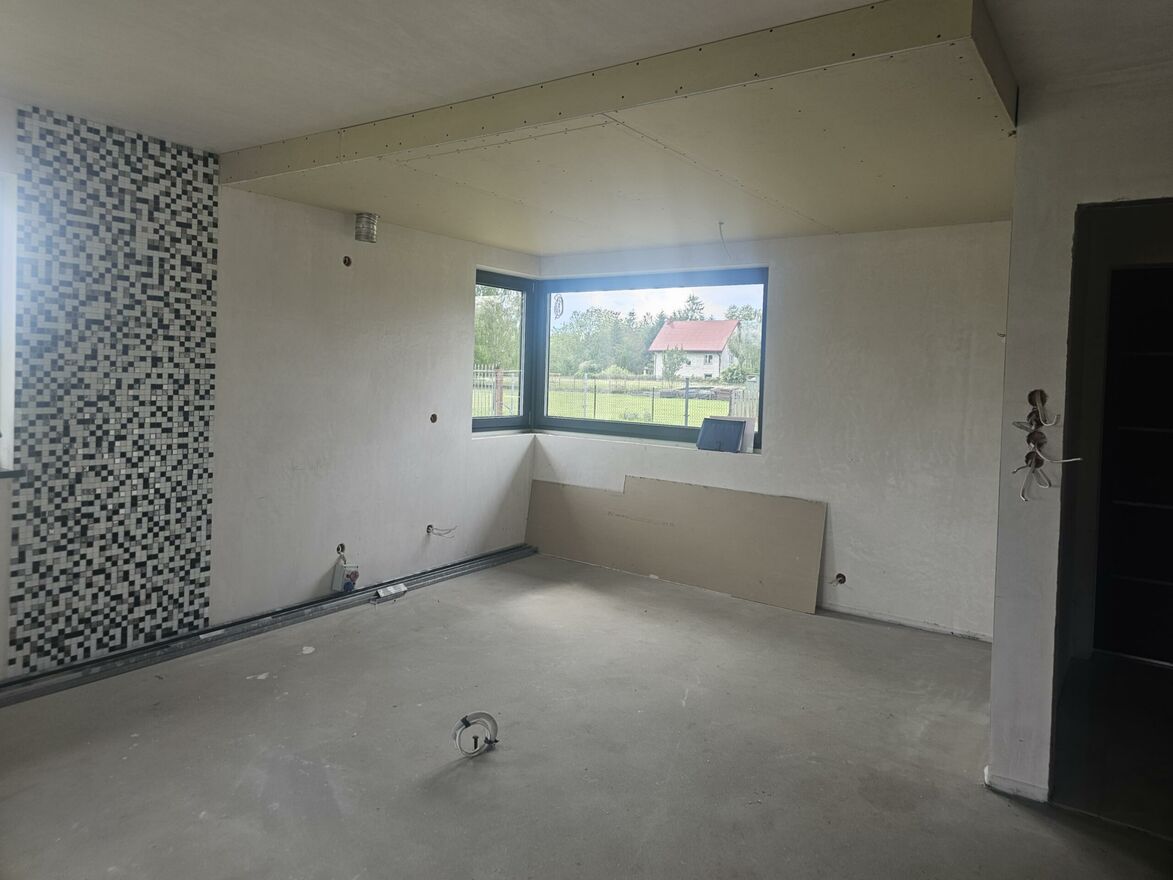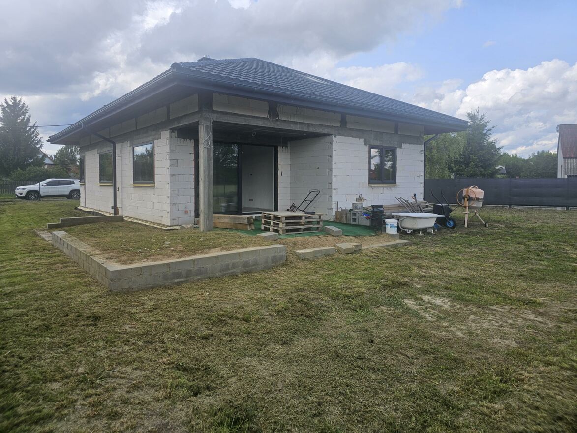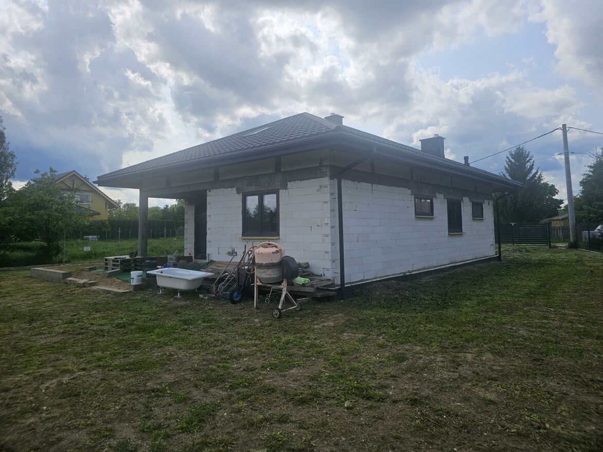 Na sprzedaż;Wolnostojący dom wśród zieleni - 94 m2, peryferie miasta, stan surowy zamknięty plus