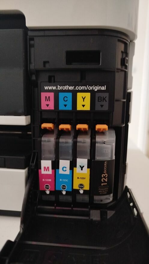 Brother MFC-J44100W - tusze 60%, problem z tym że od jakiegoś czasu nie widzi nowego wkładu niebieskiego - mimo kupionych nowych (identyczne tusze jak do Brother DCP-J4120DW)