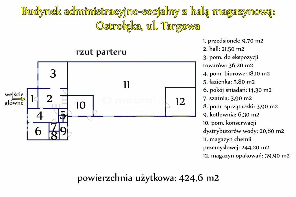 Na sprzedaż nieruchomość komercyjna położona przy ulicy Targowej w Ostrołęce, w sąsiedztwie obwodnicy miasta. To doskonała lokalizacja dla przedsiębiorców poszukujących miejsca na działalność gospodarczą z wygodnym dostępem do głównych tras komunikacyjnych.Działka o powierzchni 1001 m2 w znacznej części jest zabudowana, a pozostały teren został utwardzony prasowaną kostką cementową, co zapewnia wygodę użytkowania i możliwość swobodnego manewrowania pojazdami. Na jej terenie znajduje się budynek administracyjno-socjalny o powierzchni użytkowej 243 m2, który oferuje komfortowe warunki do prowadzenia działalności biurowej i administracyjnej. Obiekt jest ogrzewany nowoczesnym i ekologicznym systemem z wykorzystaniem pompy ciepła, co znacząco obniża koszty eksploatacji.