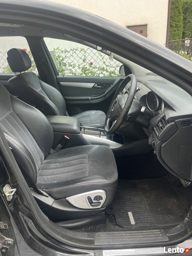 Witam, mam na sprzedaż Mercedesa R-klasę z 2007 roku – mocny diesel 3.0 V6 generujący 224KM w automacie 7G-Tronic i napędzie 4MATIC. Jest to anglik, na ten moment niezarejestrowany w Polsce i nie posiada OC, ale ma ważny przegląd.Auto jest ogólnie zadbane, silnik, skrzynia i napęd działają płynnie, wnętrze czyste, siedzenia i plastiki są w dobrym stanie. W miejscu fabrycznego radia ma tablet z nawigacją, YouTube, Bluetooth, muzyką itd.