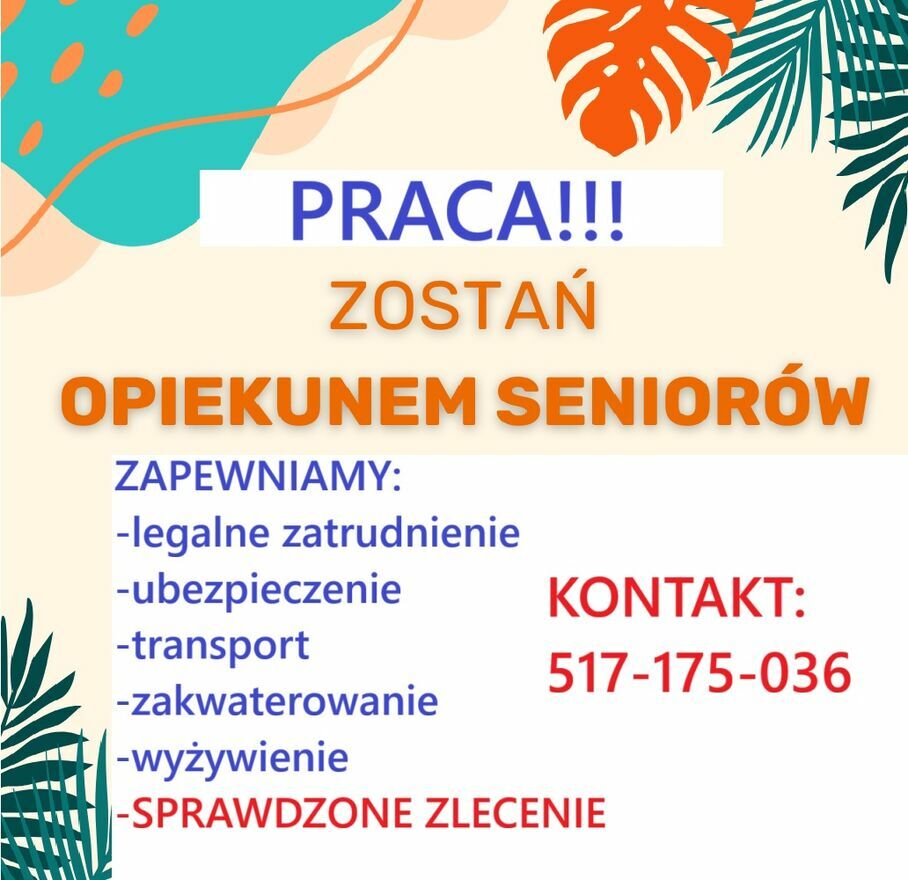 Praca Opiekun Seniora- ZAPEWNIAMY WSZYSTKO
