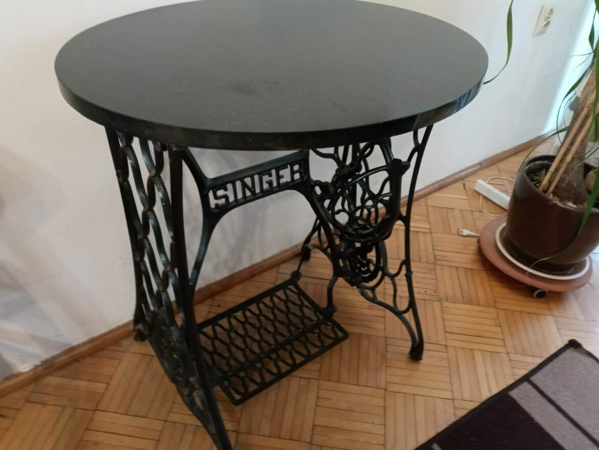 2. Dekoracyjny stolik o nogach żeliwnych , blat czarny marmurowy- kształt elipsy. Wymiary: sz. 56 cm, dł. 70 cm , wys. 85 cm. Cena 500 zł.